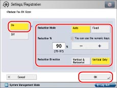If the area of the image which exceeds the printable area is less than 12 mm, the image will not be printed, regardless of the settings you set for Reduce Fax RX Size.