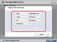 Press [Set Destination] → [Register LDAP Server] → [Register/Edit LDAP Search].