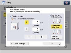 If you set any two of [Copy Set Numbering], [Watermark], or [Print Date] to print in the same position, a confirmation message appears when you press