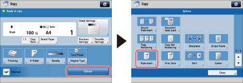 You can also select text that has been registered in [Register Characters for Page No./Watermark]. (See "Registering/Editing/Deleting User-Defined Text for Page Numbers and Watermarks.")