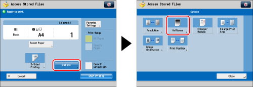 This mode is only available for printing files stored in the Advanced Space, the Advanced Space of another imageRUNNER ADVANCE machine on the network, or memory media.