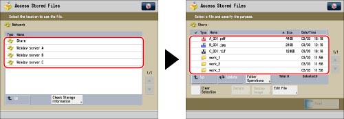 Press [Access Stored Files] → [Network].