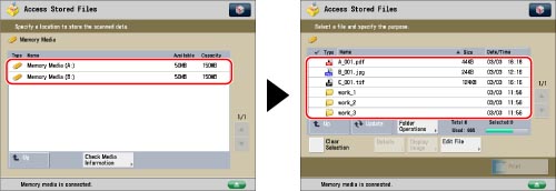 Select the desired memory media → select the directory where the file you want to check is stored.