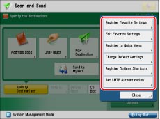 Registering/Editing/Deleting Favorite Settings Buttons for Scan and Send