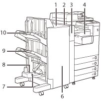 Do not place anything other than output paper in the trays of the finisher, as doing so may damage the trays.