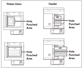 When the External 2/4 Hole Puncher is attached, holes can be punched in the following paper sizes: Two or four holes: A3, A4