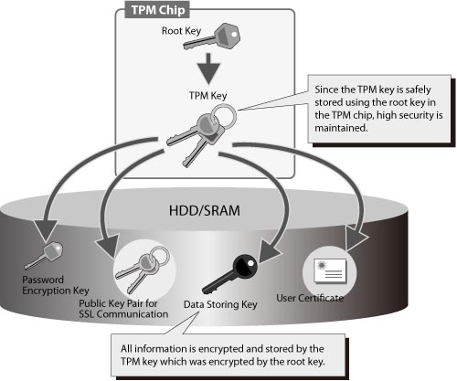 You can encrypt the password and certificate information managed in the hard disk or SRAM using the TPM Settings mode.