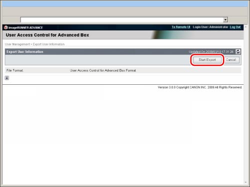 Export user information when you back up data on the Advanced Space to use on another imageRUNNER ADVANCE series machine. You can use the data stored on the Advanced Space if you import the user information into the other machine. For information on backing up/restoring stored data, see "Backing Up Stored Data."