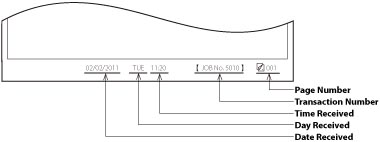 You can set whether the machine prints the date, day, and time received, transaction number, and page number at the bottom of received documents.