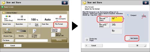 This mode is only available for storing files in the Advanced Space, the Advanced Space of another imageRUNNER ADVANCE machine on the network, or memory media.