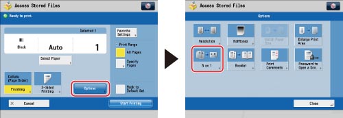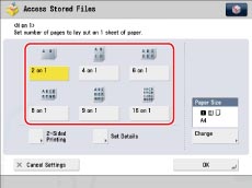 This mode is only available for printing files stored in the Advanced Space, the Advanced Space of another imageRUNNER ADVANCE machine on the network, or memory media.