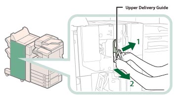 1. Open the upper delivery guide. |