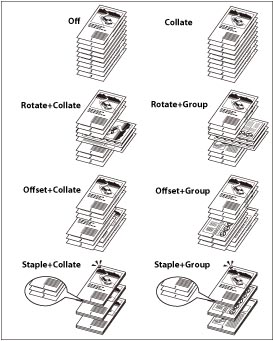 [Rotate+Collate] and [Rotate+Group] are available if the paper size is A4, A4R, B5, B5R, LTR, or LTRR.