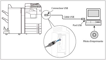 L'interface USB appropriée diffère selon le système d'exploitation de l'ordinateur connecté, comme décrit ci-dessous. Pour plus d'informations, contacter le revendeur local agréé Canon.
