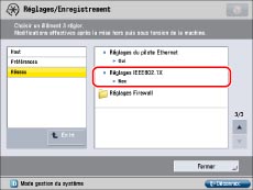 Appuyer sur [Préférences] → [Réseau] → [Réglages IEEE802.1X].