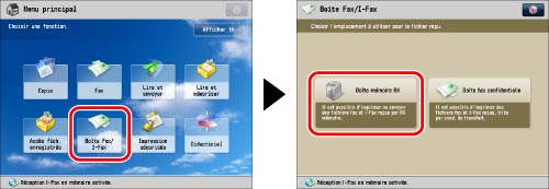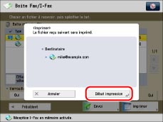 Si <Verrouillage mémoire fax> et/ou <Verrouillage mémoire I-Fax> sont réglées sur "Non", les fichiers reçus via la fonction Fax/I-Fax sont automatiquement imprimés et supprimés de la boîte mémoire RX.