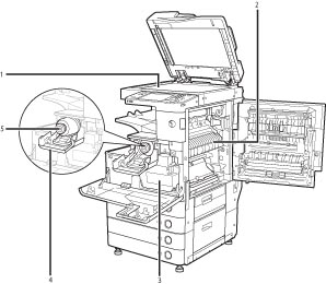 Ouvrir pour remplacer le réceptacle de toner usagé.