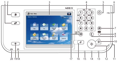 Comprend les touches, l'afficheur tactile et les voyants requis pour la manipulation de la machine. (Voir "Panneau de commande".)