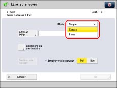 Pour un envoi en mode Plein, la machine du destinataire doit le prendre en charge. Lors d'un envoi en mode Plein, il est possible de confirmer si l'I-fax a été envoyé avec succès.