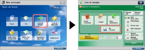 Si SSO-H (avec authentification du périphérique local) est défini comme service de connexion, sa propre adresse électronique (enregistrée pour le système d'authentification utilisateur de SSO-H) est définie comme destinataire.