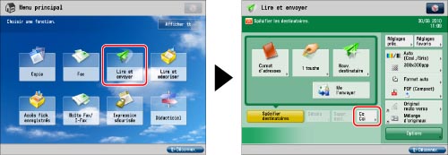 Appuyer sur [Lire et envoyer] → [Cc Cci].