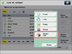 Appuyer sur [Lire et envoyer] → [Carnet d'adresses].