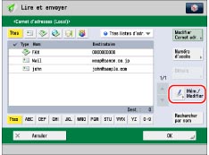 Il est possible de modifier les informations des adresses mémorisées en fonction des besoins. Toutefois, seuls les destinataires mémorisés dans le carnet d'adresses local peuvent être modifiés.