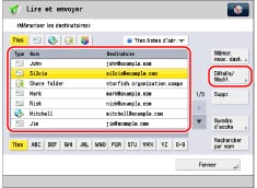 Sélectionner le destinataire à modifier → appuyer sur [Détails/Modif.].