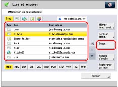 Sélectionner le destinataire à supprimer → appuyer sur [Suppr.].