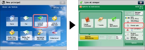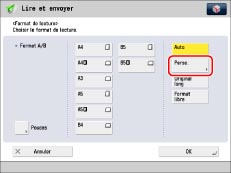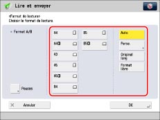 Pour lire des originaux non standard de longueur supérieure au A3, appuyer sur [Original long]. La longueur maximale des originaux qu'il est possible de lire est de 630 mm.