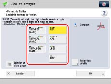 Si l'on sélectionne [TIFF/PDF (Auto)], l'option [Optimiser PDF pour le Web] n'est pas valide, même si elle est réglée sur "Oui". (Voir "Optimisation de PDF pour le Web".)