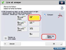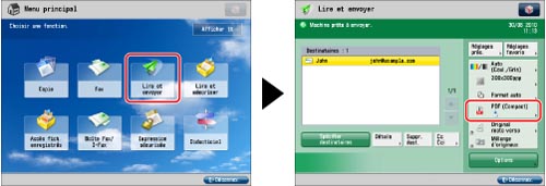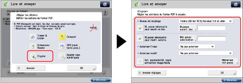 Le fichier PDF crypté est rappelé et envoyé depuis les Réglages favoris