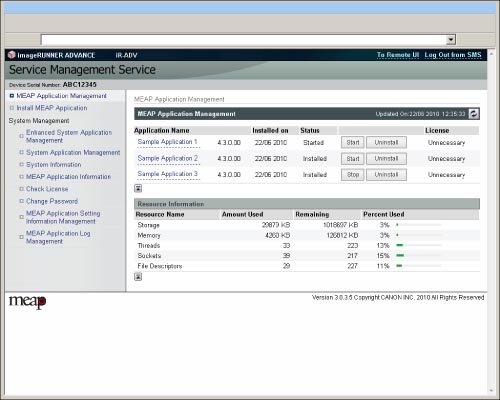 Il est possible d'installer et de désinstaller les applications MEAP correspondant à la machine depuis l'ordinateur. (Voir "Installation des applications" et "Désinstallation des applications".)