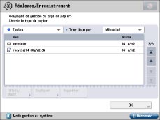 Lorsque l'on mémorise les réglages du type de papier personnalisé, veiller à modifier son nom. Il est impossible de modifier les réglages des types de papier par défaut enregistrés sur la machine.