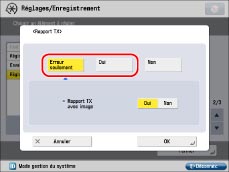 Pour plus d'informations sur les rapports d'émission (TX)/rapports d'erreur, voir "RAPPORT TX".