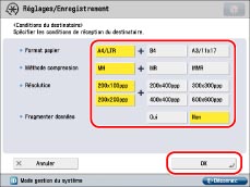 Définir les conditions de réception en fonction des spécifications de la machine du destinataire. Une erreur de transmission peut survenir si les conditions définies ne sont pas prises en charge par la machine du destinataire.
