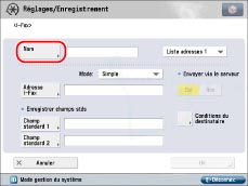 Si les documents ne sont pas envoyés par le biais d'un serveur et si l'adresse IP du destinataire n'est pas mémorisée avec un serveur DNS, entrer le nom de domaine selon ce format : (utilisateur)@(adresse IP du destinataire).