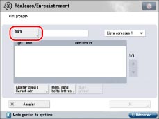 Lors de la définition d'une adresse de groupe, il n'est possible de sélectionner que des destinataires enregistrés dans une même liste d'adresses.