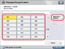 Sélectionner un bouton de composition 1 touche à mémoriser ou modifier → appuyer sur [Mémoriser/Modifier].