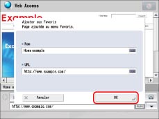 La page Web mémorisée est ajoutée à la liste affichée en appuyant sur [Favoris].