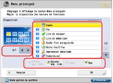 dans la partie supérieure droite de l'écran, l'écran suivant s'affiche. Sélectionner les réglages dans l'écran affiché et régler l'affichage de l'écran Menu principal.