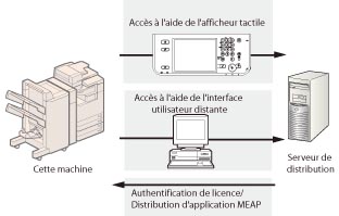Pour ajouter de nouvelles fonctionnalités à la machine sans avoir recours à des périphériques système, il est possible d'installer des applications MEAP sur cette machine. Pour plus d'informations sur les applications MEAP, voir