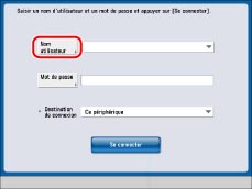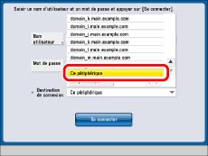 Les noms des domaines permettant l'authentification utilisateur sont affichés dans la liste déroulante <Destinataire de connexion>.