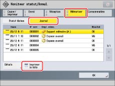 Il existe trois types d'emplacements de mémorisation. Si l'une des conditions suivantes se vérifie, l'emplacement correspondant est imprimé.