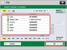 pour procéder à l'envoi à partir de l'écran Carnet d'adresses. |