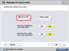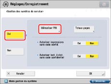 (limite de pages) en regard des touches [Oui]/[Non] pour chaque fonction souhaitée.