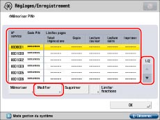 pour afficher le service dont le code PIN est à modifier → sélectionner le service → appuyer sur [Modifier].