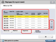 Il est impossible d'enregistrer/de supprimer des numéros de service si Gestion des numéros de service a été activé par l'intermédiaire du Lecteur de Carte-F1.