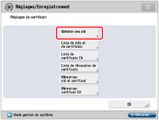 Pour confirmer la biclé et le certificat de serveur enregistré, voir "Modification d'une biclé et d'un certificat de serveur".