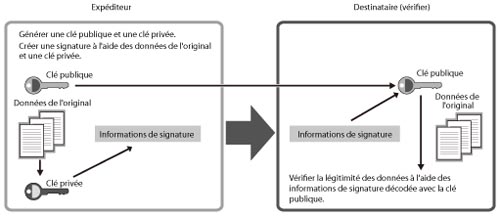 La structure d'une signature numérique est indiquée ci-dessous. En comparant les données chiffrées de l'expéditeur à la clé publique, le destinataire peut vérifier la légitimité de l'expéditeur et des données.